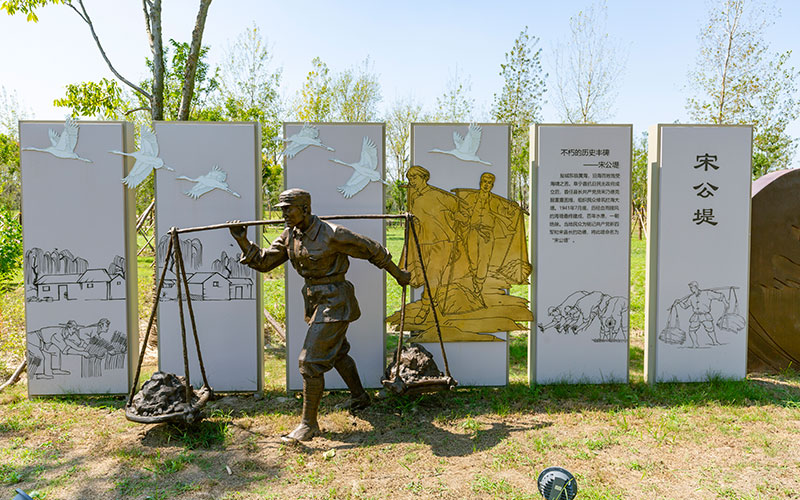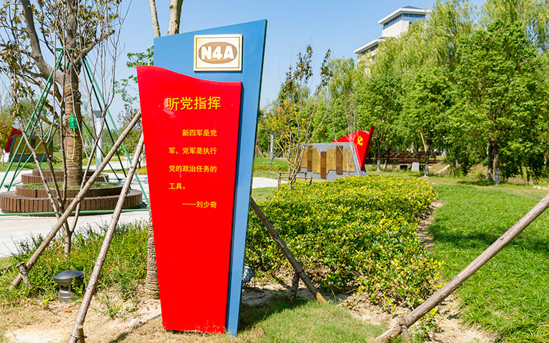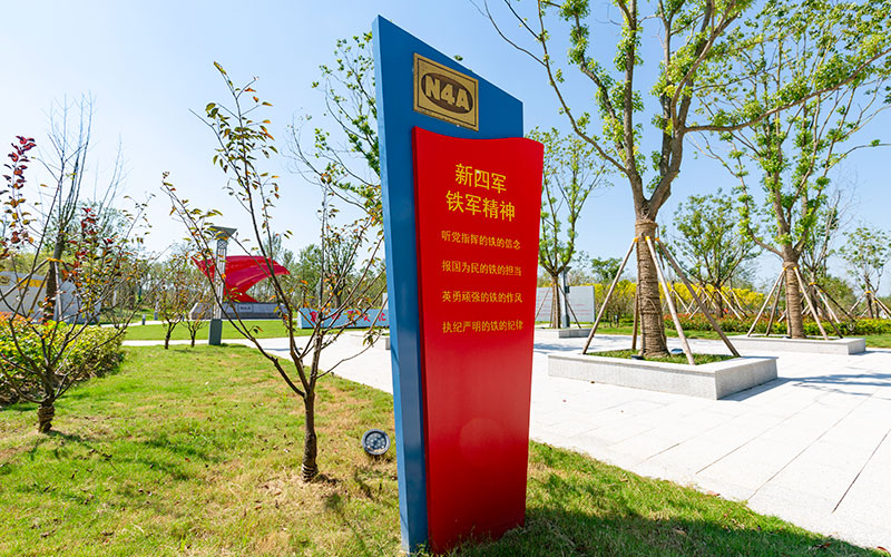 新四軍文化林,位于鹽城經(jīng)濟技術(shù)開發(fā)區(qū),北起團結(jié)河,南至鹽瀆路,東側(cè)毗鄰鹽城市委黨校,西至通榆河河坎,總面積315畝,總投資約1億元,已于2021年4月竣工。新四軍文化林以自然林帶為背景,鐵軍文化為核心,整合四季景觀,追憶新四軍英雄史詩,通過“聽黨指揮、報國為民、英勇頑強、戰(zhàn)地黃花、執(zhí)紀嚴明、經(jīng)濟建設(shè)、團結(jié)統(tǒng)戰(zhàn)、旌旗獵獵”八大版塊,以人物故事、感人事跡串點成線,通過開放、共享的休閑觀光形式向廣大市民和培訓(xùn)學(xué)員宣傳新四軍鐵軍精神和鐵軍文化,從革命歷史中感悟和汲取鐵軍精神的強大力量,以樹為碑銘記初心,以林為魂啟迪后人。